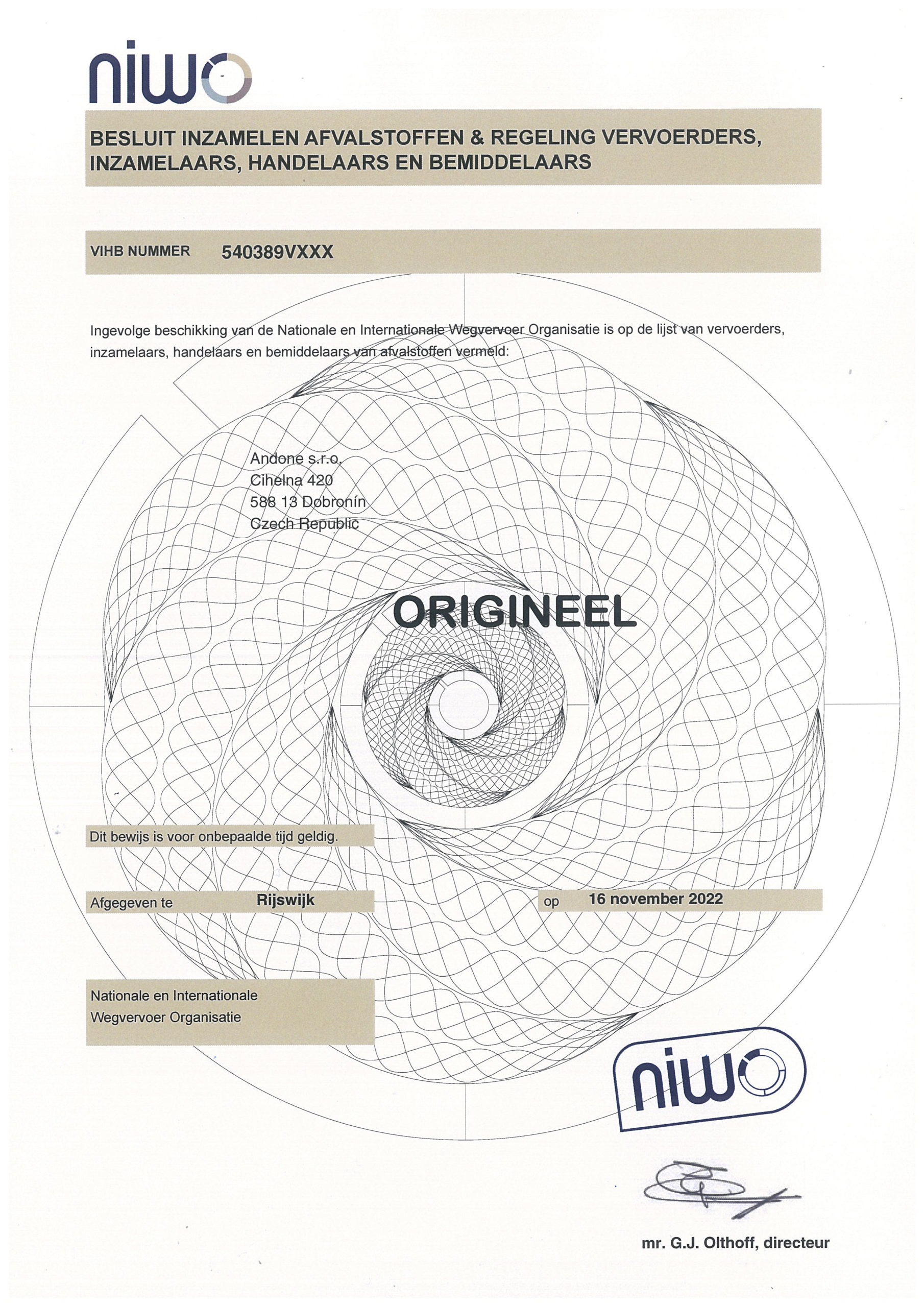 Registrace NIWO
